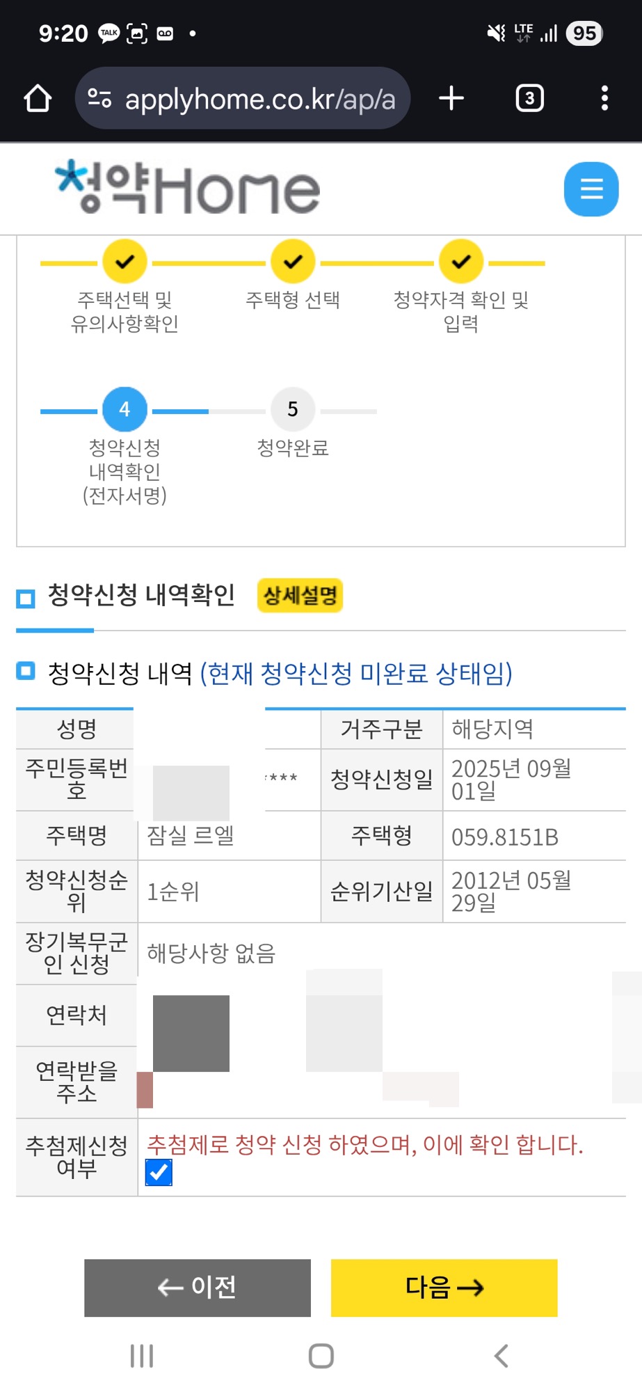 사실 우리는 이미 2019년에 아파트 청약 당첨으로 지금 살고 있는 집에 입주한 경험이 있다. 그때 운이 따라줘서 새로운 집을 마련할 수 있었는데, 이번에도 그 행운이 다시 한번 와주면 좋겠다는 바람이다. 청약을 넣으면서도 ‘과연 될까?’라는 의문이 들지만, 지난 경험을 떠올리면 이번에도 가능성이 전혀 없다고 생각하지는 않는다.